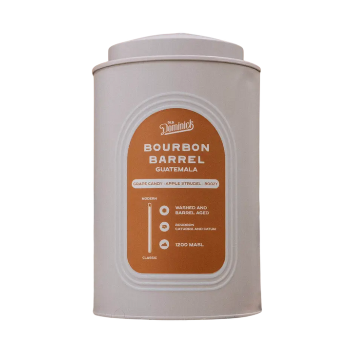 Influenced by the slow warmth of retired bourbon casks, this Guatemalan single origin develops notes of apple strudel, grape-candy sweetness, and a gentle boozy finish. Its character comes from time—two full weeks resting in oak, where the coffee absorbs nuance without losing its clarity.