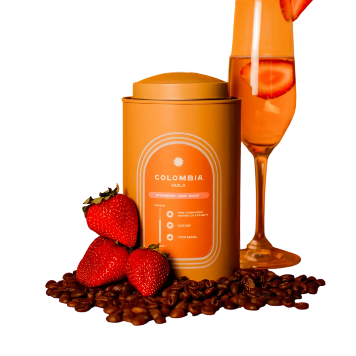 Inspired by the soft sparkle of a chilled rosé, this coffee carries vivid strawberry notes, gentle funk, and a lifted, almost effervescent finish. Producer Elkin Guzman builds this character slowly—through careful co-fermentation, layered fruits and spices, and days of attentive tasting until the profile finds its balance.